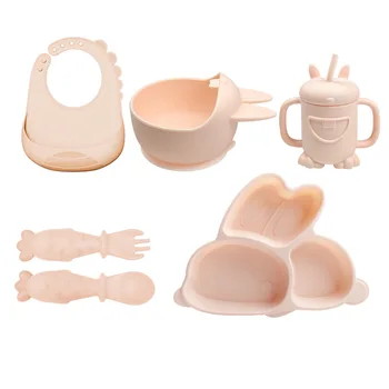 Food Grade Silicone Rabbit Feeding Set, Suction Plate Bowl Sippy Cup with Cute Bib Carrot, Dishwasher Safe