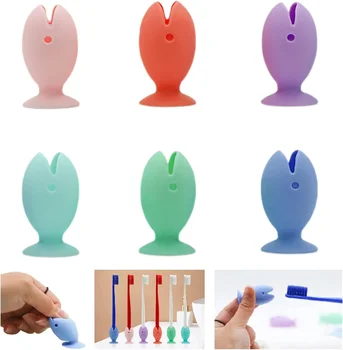 Silicone Fish Toothbrush Cover with Suction Cup Base, Standing Holder, Travel Head Protectors for Bathroom Travel and Camping